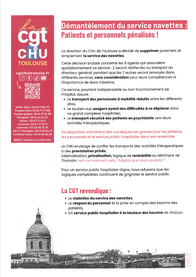 Luttes sur le CHU Non au Démantèlement du service navettes du CHU de Toulouse ! par CGTCHU5 juin, 2025