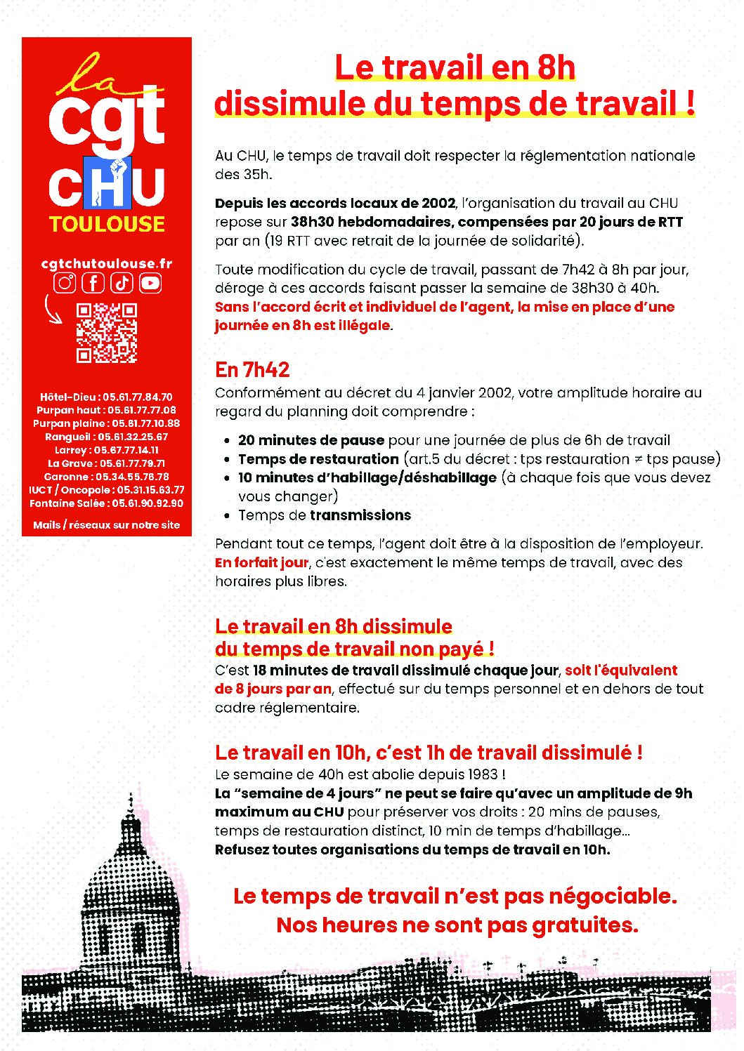 Luttes sur le CHU Journée de 8h, semaine de 40h = travail dissimulé par CGTCHU17 décembre 202517 décembre 2025 Tract – 8h = travail dissimuléTélécharger